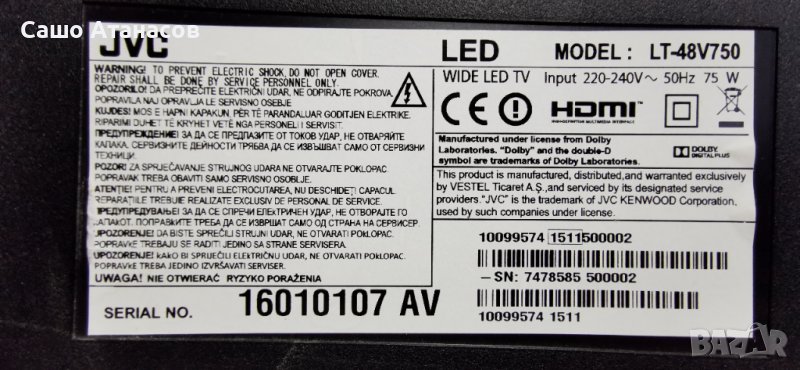 JVC LT-48V750 с дефектна матрица , 17IPS71 , 17MB97 , 13VNB_S60TMB4C4LV0.0 , VES480UNDS-2D-N02