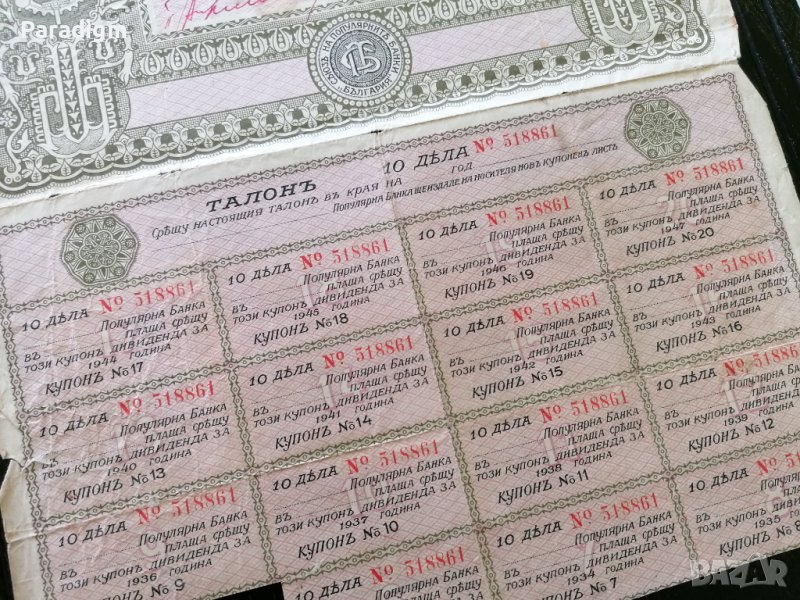 5 дяла от по 100 лева всеки от 1927г.