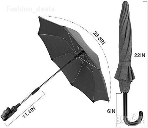 Нов Универсален черен чадър 73 см за детска количка 50+ UV защита бебе