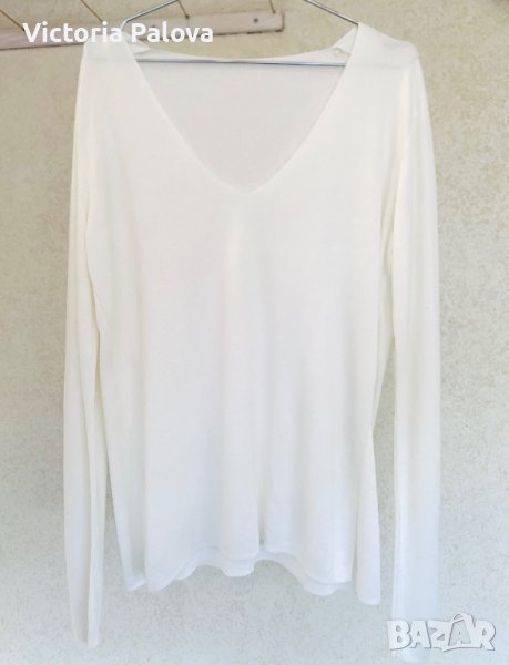 Млечнобяла блуза кежуал с V деколте → Обява 40382940