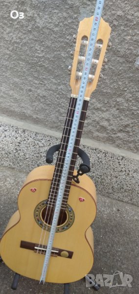 Класическа китара с размер подходяща за деца 6-9 години произведена от немците Carl Hellweg и Diter Hopf. Китарата е неизползвана поради липса на интерес и без следи от употреба. Варна и звучна. Има четири стикера, те не са скъсани и затова дали ще ги махнете си го преценявате вие. Китара звучи много добре и е решения да си ползва за травъл китара, акордите се хващат добре и от голям човек. Аз имам такава в колата си. Цената и в Западна Европа е около 550-600 лева.