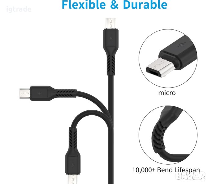 [Отлична сигурност]: Кабелът за данни Micro USB разполага с резистор 56kΩ, за да предпази устройството ви от повреда по време на високоскоростно зареждане. Освен това Micro USB е изработен от висококачествени материали и е тестван многократно, за да се гарантира неговата безопасност.