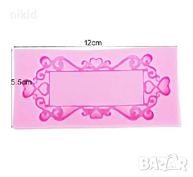 Тясна правоъгълна рамка правоъгълник със сърца силиконов молд форма фондан → Обява 40384761