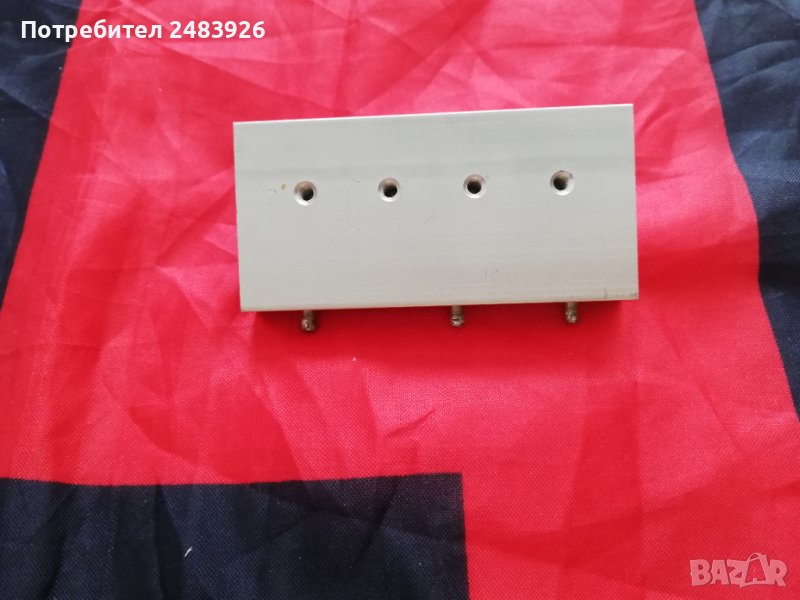 на издадената част70х14х12мм.Закрепване към основа на платка с три щифта чрез запояване. Има 4 отвора за монтаж на 4 транзистора CEP83A3, с корпус TO-220.