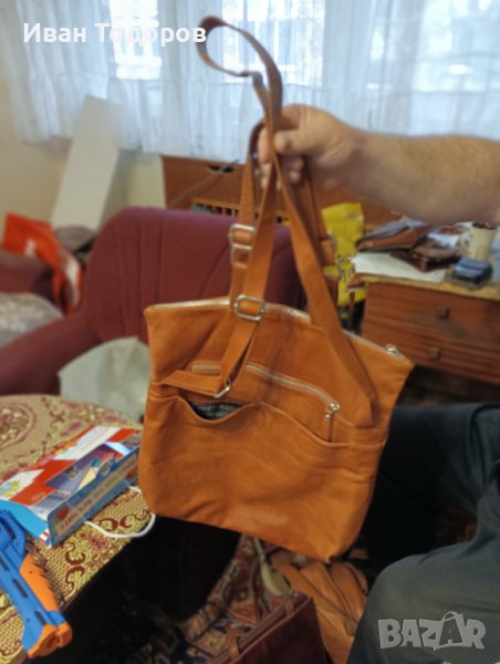 Дамска чанта от телешки бокс. ш 40 в 40 д15 см.Много здрава чанта почти не ползвана без външни и вътрешни забележки.всички пружини и закопчалки работят безупречно.Лек коментар.