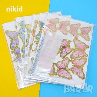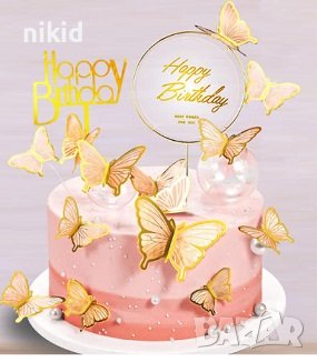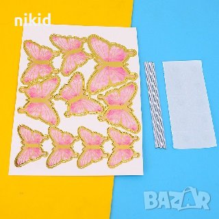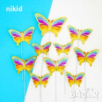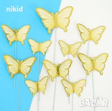 10 пеперуди картонени златен контур на тел шарени топери украса декор за торта