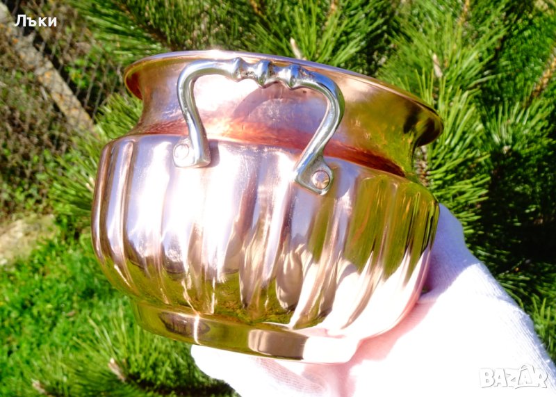 Старинна белгийска медна тенджера,меден съд,майсторска ръчна