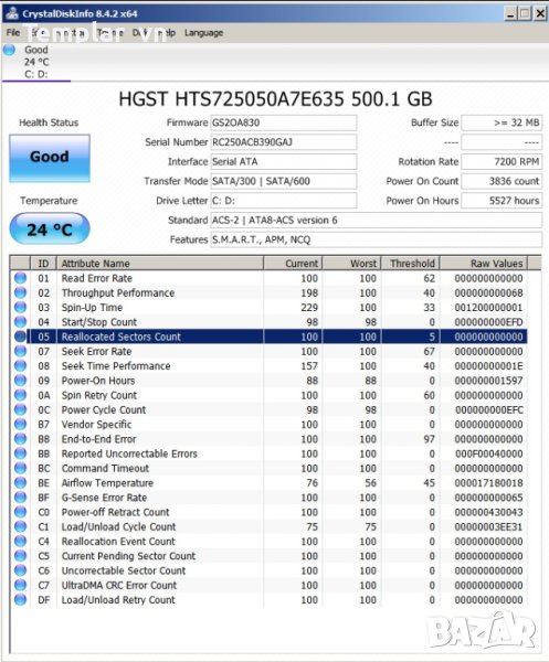 1) Hitachi Travelstar Z7K500-500 HTS725050A7E635