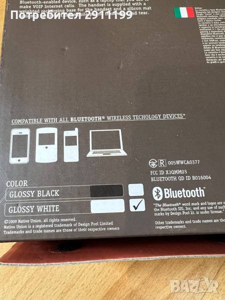 Марка: Moshi Moshi wireless handset ( glossy white ).Практически нова , дизайнерска , домашна блутут слушалка за телефонни разговори.Designed by David Turpin.Пълен комплект с micro USB кабел , зарядно и оригинална опаковка. Идеална за подарък или ползване.