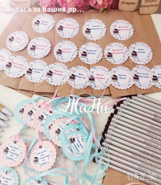 * опаковка с етикет с името на детето