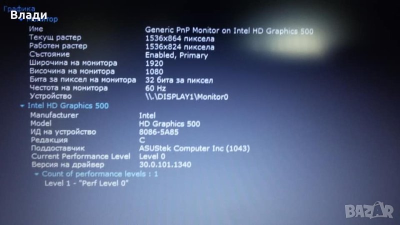 с процесор Intel Celeron N3060 (2-ядрен, 1.60 - 2.48 GHz, 2MB кеш)) 4GB рам и видеокарта Intel HD Graphics 400 1GB - 60лв.