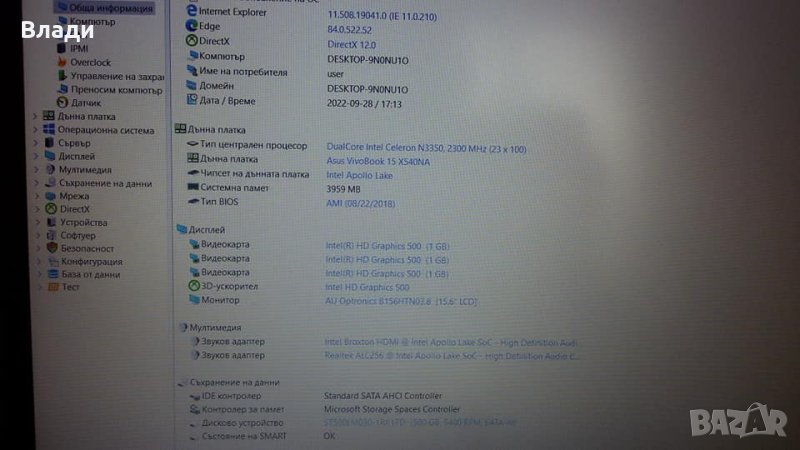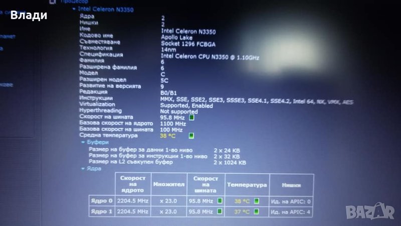 с процесор Intel Celeron N3350 (2-ядрен, 1.10 - 2.40 GHz, 2MB кеш) 4GB рам и видеокарта Intel HD Graphics 500 1GB - 60лв.
