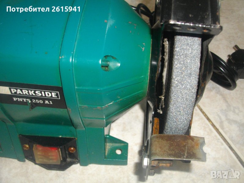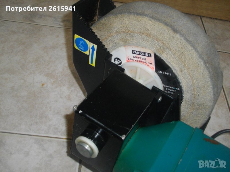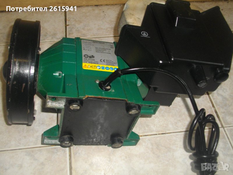 ОПИСАНИЕ на голям шмиргел 250 вата немски комбиниран мокро/сухо шлайфане - цена 259 лв. Марка и модел - Parkside PNTS 250A. Произовдство Германия 2016 г. Мощност - 250 вата, скорост - 2900 об/мин. Време на работа с един пуск S2 - 30 мин. За шлифовъчни камъни за мокро шлайфане размер ф 200 мм, за сухо шлайфане камъни размер ф 150 мм. Поставени камъни оригинален мокро шлайфане ф 200 мм мек амразив за заточване остриета и за сухо шлайфане ф 150 мм сив универсален пясъчен абразив. Размери на шмиргела - 400 х 200 х 250 мм вис. Тегло - 6,5 кг.