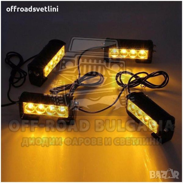 К-т 4 бр LED аварийни лампи с контролер Жълта блиц светлина 12V/24V