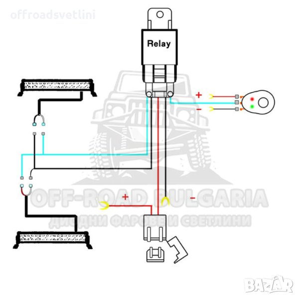 Окабеляването е снабдено с кабелни обувки, предпазител, реле и ключ - прекъсвач с led индикация за включени и изключени светлини.