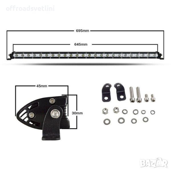 LED фар тип BAR с един ред светодиоди и тънък алуминиев корпус.