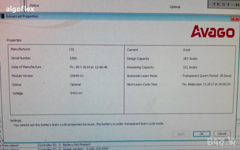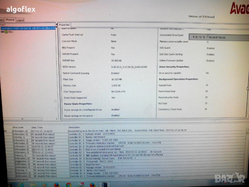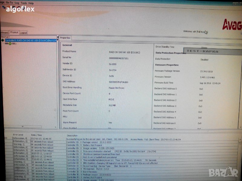 LSI MegaRAID фърмуер: 3.460.115-6465 BIOS 6.1-71-Rel (LSI pkg 23.34.0-0019 )