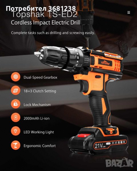 - 2000mAh литиева батерия. Висока мощност и дълго