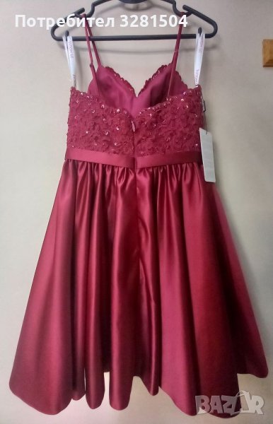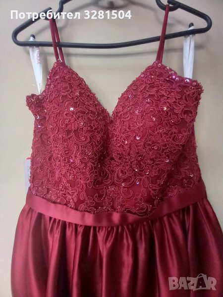 Нова, с етикет. Талия 72см,бюст 85см. С вградено бюстие. Материал сатен и бродирана дантела.