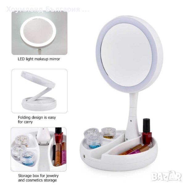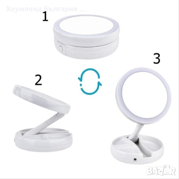 Страхотно козметично LED огледало с въртяща глава позволяваща да се използва от двете страни. Едната страна е с 10 кратно увеличение, а другата е нормално огледало.