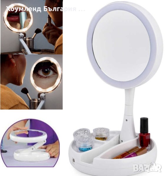 Сгъваемо двулицево LED огледало с 10 кратно увеличение