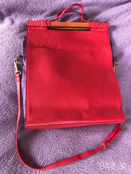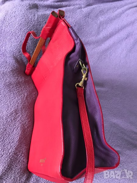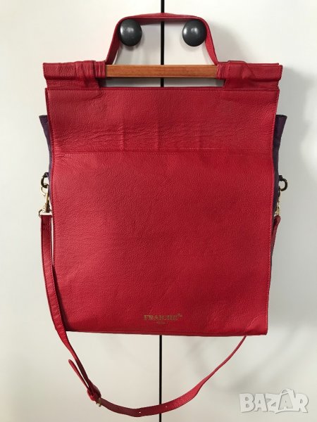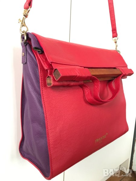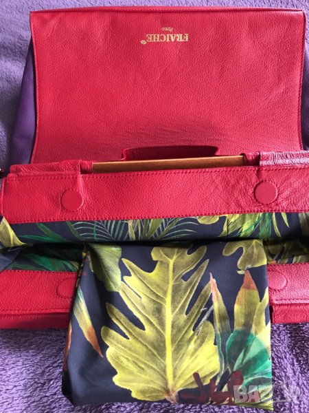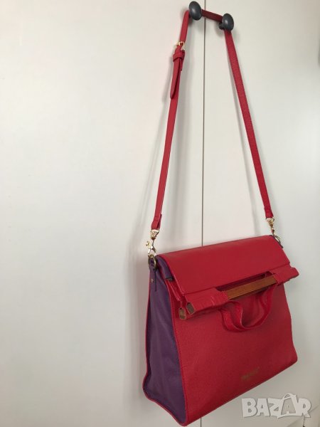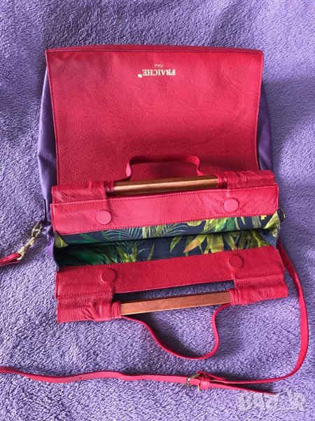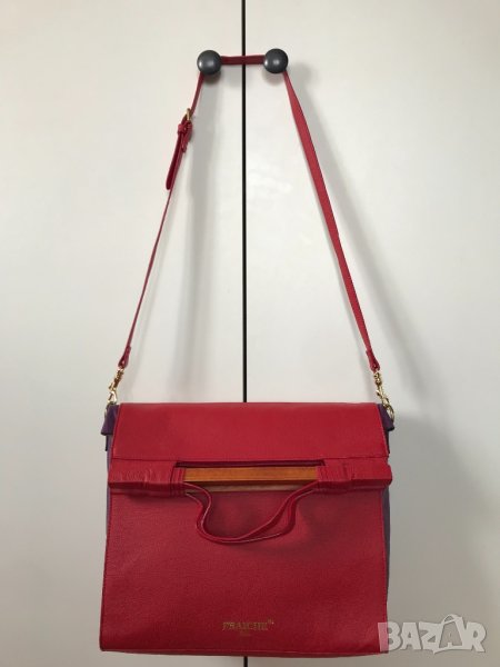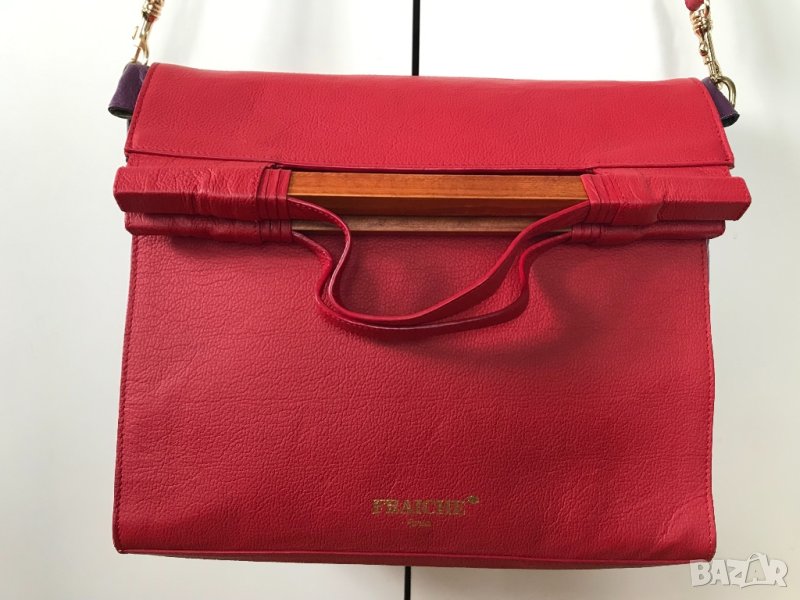 Дамска чанта Fraiche Paris корал червена и лилаво ретро стил дълга дръжка → Обява 40397251