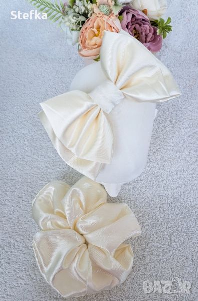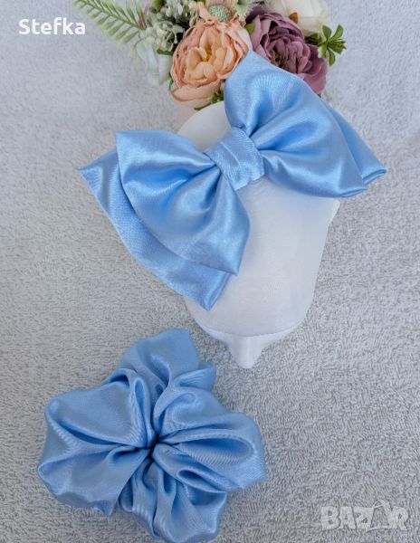 Диадема с голяма двойна сатенена панделка в различни цветове - цена лв. Скрънчи в същия цвят - цена 2,20€ Може да се изработят и в други цветове.