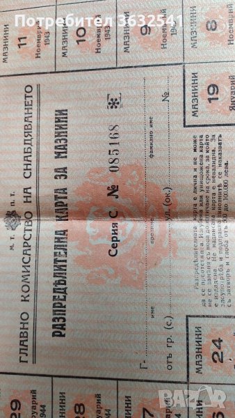 Продавам стара разпределителна карта за мазнини от 1943г. → Обява 40402171