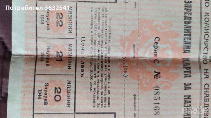 Продавам стара разпределителна карта за мазнини от 1943г., снимка 1 - Други ценни предмети - 40402171 Продавам стара разпределителна карта за мазнини от 1943г., снимка 2 - Други ценни предмети - 40402171 Продавам стара разпределителна карта за мазнини от 1943г., снимка 3 - Други ценни предмети - 40402171 Продавам стара разпределителна карта за мазнини от 1943г., снимка 4 - Други ценни предмети - 40402171 1/4