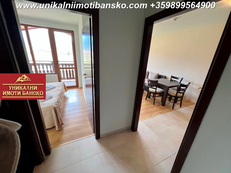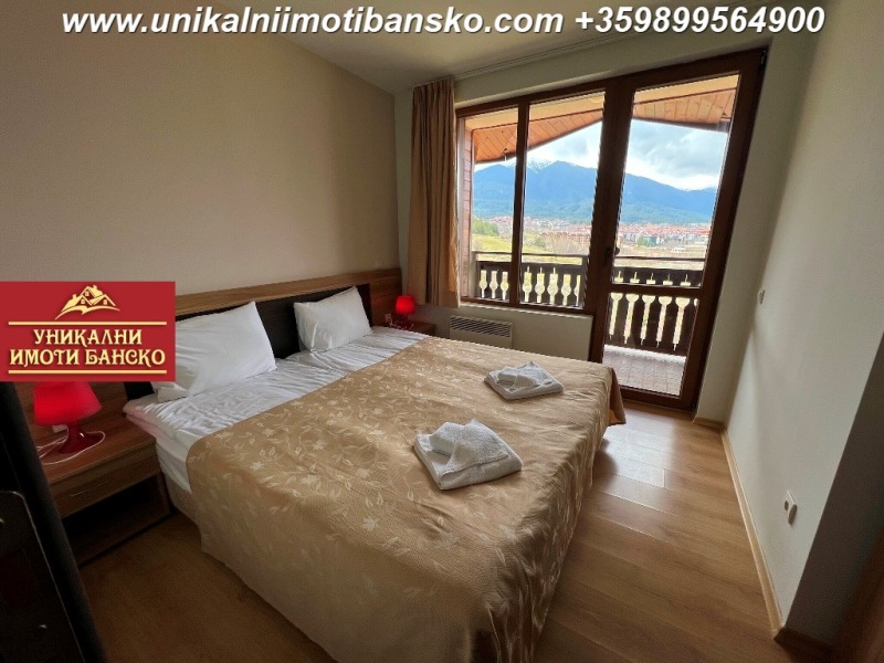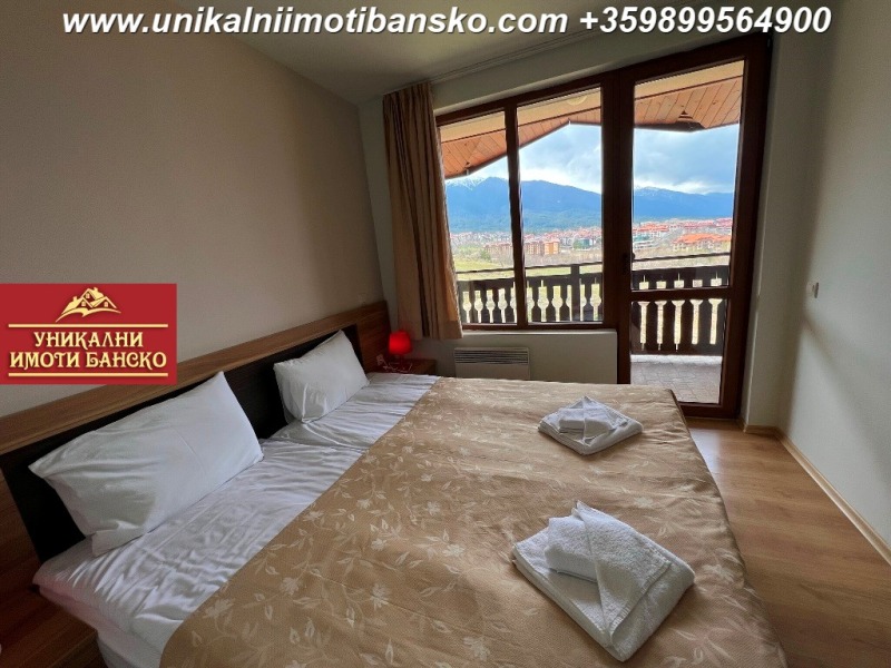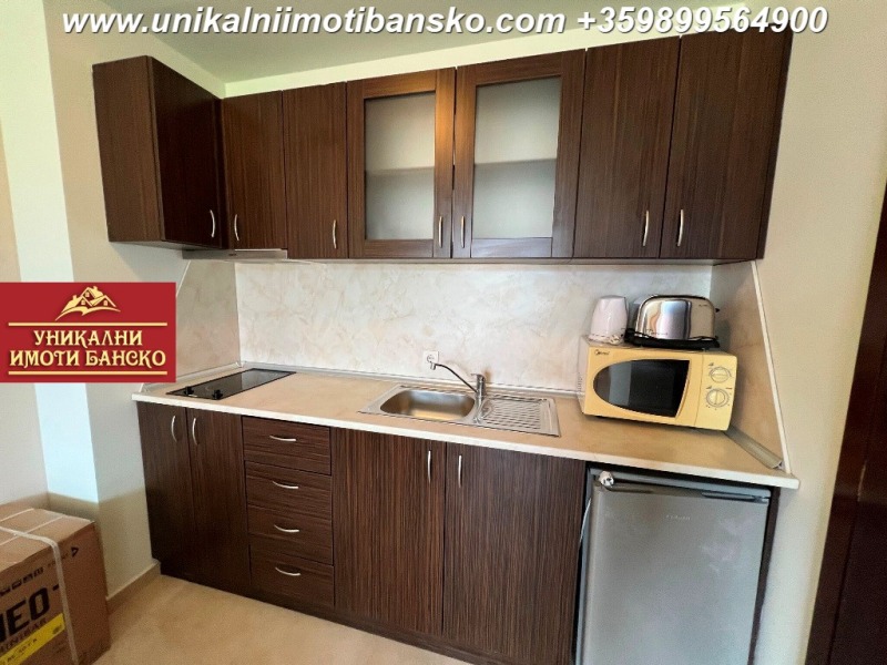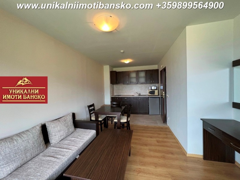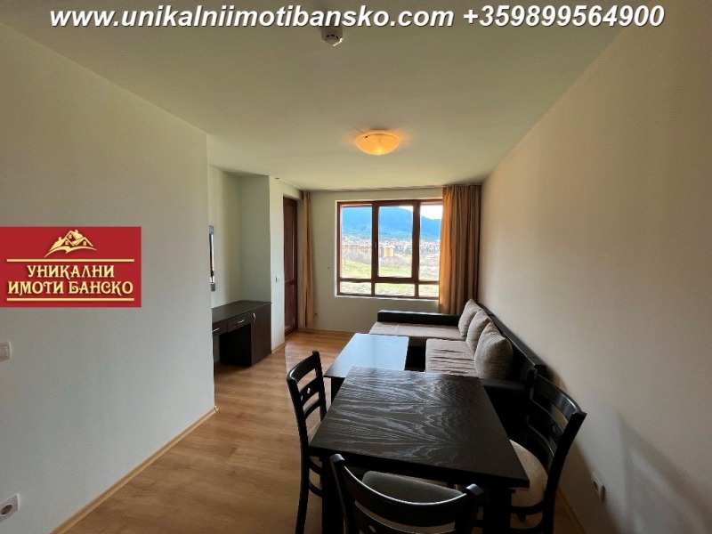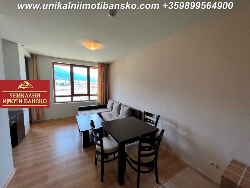 www.unikalniimotibansko.com БЕЗ КОМИСИОННА ОТ КУПУВАЧА! Агенция 'Уникални Имоти Банско' предлага за продажба НАПЪЛНО ОБЗАВЕДЕН И ГОТОВ ЗА НАНАСЯНЕ ДВУСТАЕН АПАРТАМЕНТ, РАЗПОЛОЖЕН В КОМПЛЕКС С ОТЛИЧНА ЛОКАЦИЯ - БЛИЗКО ДО СКИ ЗОНАТА НА ГРАД БАНСКО! СТРАХОТНА ГЛЕДКА КЪМ ГРАДА И ПЛАНИНАТА! Апартаментът е разположен на 4-ти етаж, като е съставен входно антре, спалня, баня и всекидневна. Спалнята е НЕпреходно и самостоятелно разположена, в нея се влиза от антрето. Тя е оборудвана с едно голямо двойно легло и малък гардероб. Стаята има излаз към тераса, която е обща с всекидневната, а от терасата се разкрива страхотна гледка към планината и града. Всекидневната е оборудвана с кухненски бокс, под който е разположена малка трапезна маса със столове, а под тях има диван с холна масичка, срещу който има шкаф, където може да поставите телевизор. Банята разполага с душ кабина и тоалетна. Комплексът има такса поддръжка, в която има включен и фонд ремонт! Страхотна инвестиция в имот, който може да ползвате за ваканционни посещения или отдаване под наем!