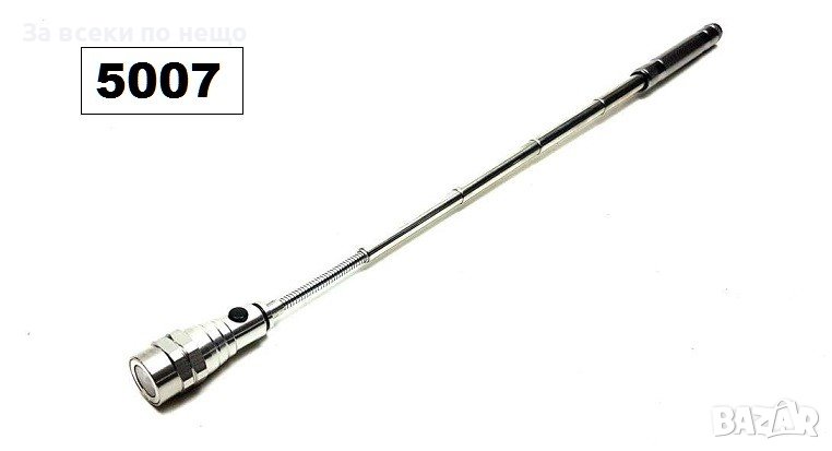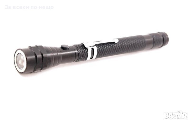 Мултифункционално диодно фенерче с 3 диода, с телескопична дръжка (с дължина от 17 до 57 см) и метална магнитна глава за осветяване и на най-недостъпните места и прибиране на всякакви метални детайли.Към задния край на фенерчето също има магнит, което позволява да се закрепва към метални повърхности.Характеристики:Изцяло метално: Изработено от алуминий.Цветове: син, сребрист, черен,червен.Безценен инструмент за всеки автомонтьор!Полезно за всеки дом!