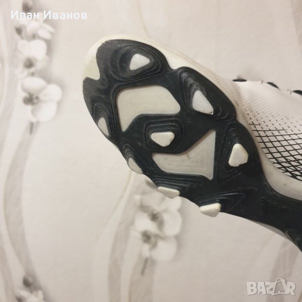 Горната част е изработена от леки синтетични материали, които меко обгръщат крака и позволяват пълен контрол на топката при пълна скорост.