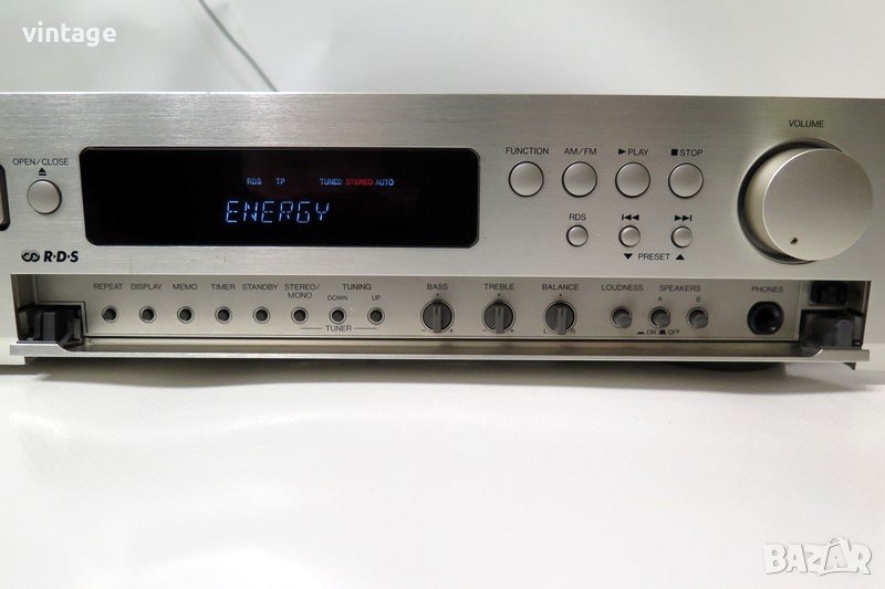 Транзисторен стерео ресийвър, отличен технически, много добър външен вид. Цифров тунер с RDS и памет, корекции: bass, treble, loudness, CD плеъра разчита матрични и записани аудио дискове. Поддържа дистанционно управление - не е налично. Приложените снимки и видео са реални!