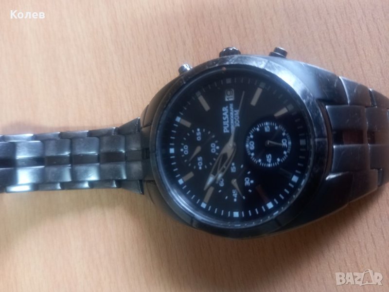 Часовник Pulsar хронограф, водоустойчив. Часовника е ползван една година но е изключително запазен и е без нито една драскотина по стъклото. Метална матова верижка.