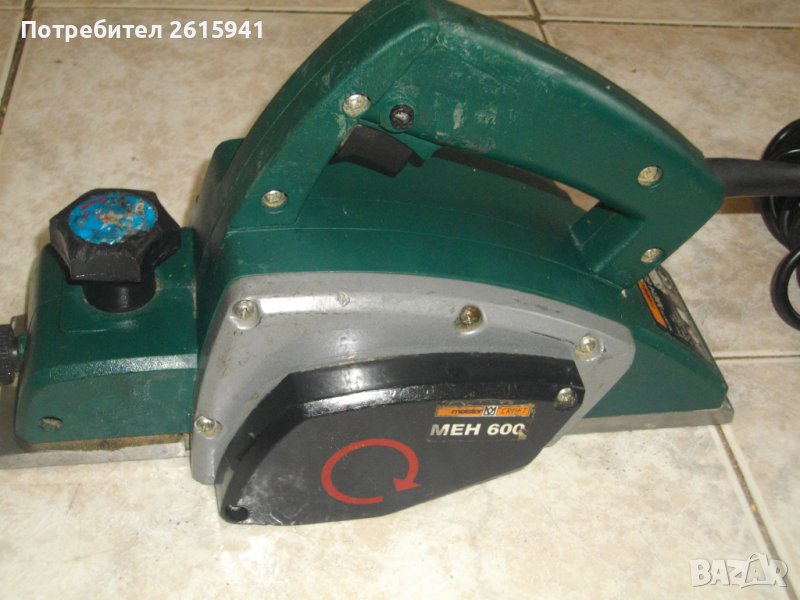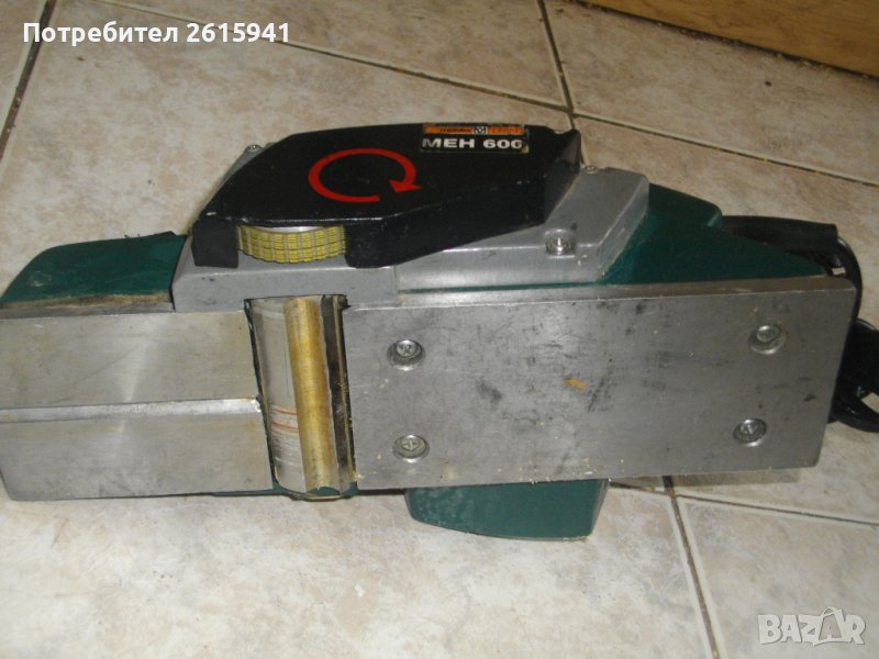 ОПИСАНИЕ на зелено 600 вата немско Мейстер Крафт - 199 лв. Марка и модел на машината - Meister MEH 600. Цена 199 лв. Оригинално немско производство 1999 г. - GERMANY - упоменато и маркирано. Машината е от старото немско качество. Много запазен външен вид и добро техническо/работно състояние. Мощност на мотора - 600 вата, скорост 15000 об/мин. Автозащита на спусъка. Стоманен кожук на корпуса. Зъбен оригинален ремък /гумен, не силиконов/. Дълбочина стружуване 0-2 мм, регулируема. Машината е за ножове 82 мм, които подлежат на заточване при захабяване. Поставени на барабана два оригинални ножа, които са добри и не е необходима смяната им. Ножовете нямат наранявания. Тегло на машината - прибилзително 3,500 кг.