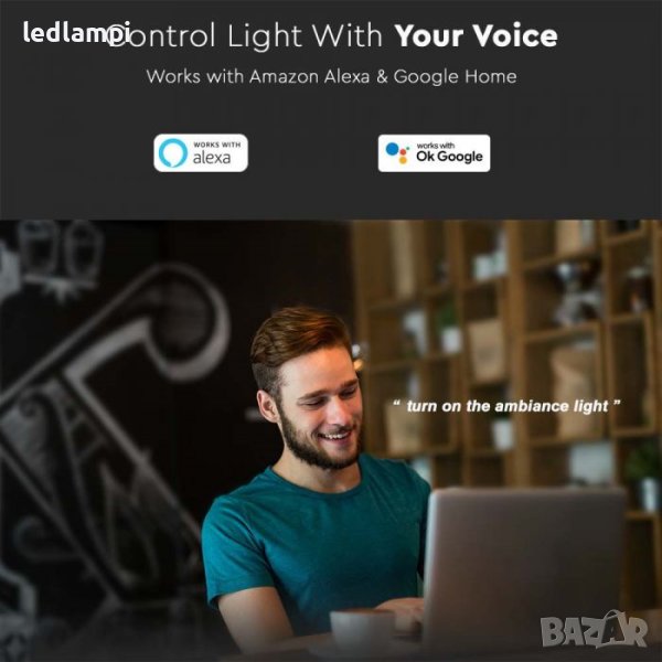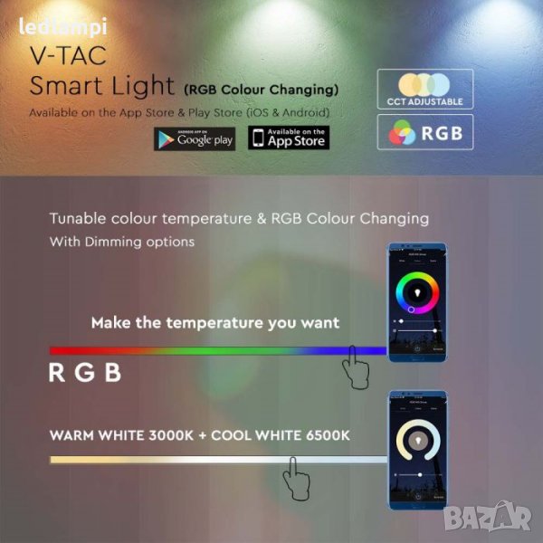 Може да се контролира чрез приложението V-TAC Smart Light или Alexa и Google Home