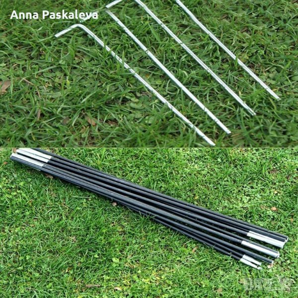 * Палатката е изработена от висококачествен полиестер и се побира в удобна чанта с цип. Разпъва се от две пръчки от фибростъкло.