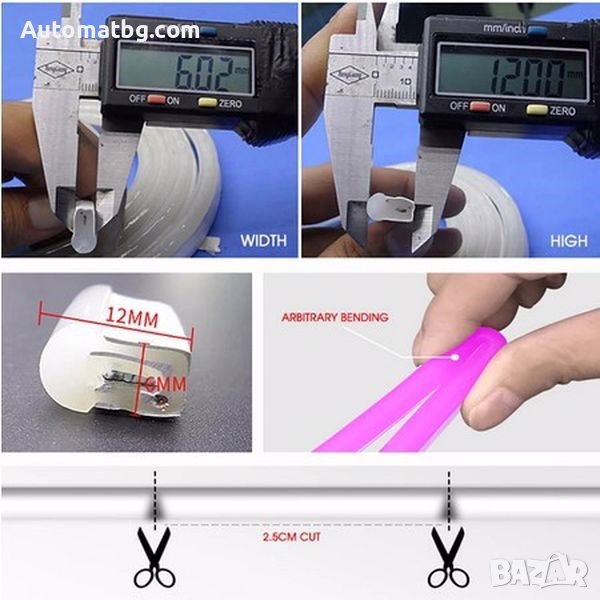 Led неонова лента Automat, Водоустойчива, 5м, Синя, Бяла, Червена, Лилава и Розова светлина.