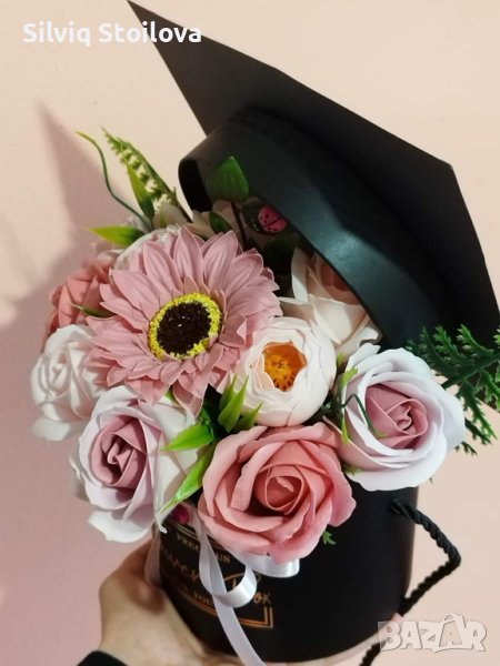 Кутия шапка със сапунени цветя за бъдещи абитуриенти или абсолвенти🎓 → Обява 40417060
