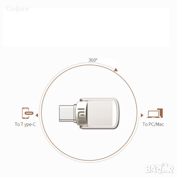 Чисто нова, вискокоскоростна Xiaomi мини USB 3.0 флашка флаш памет 2 TB с Type-C + ПОДАРЪК преходник от USB към USB Micro. Подходящ за ключодържател, изработено от метал.