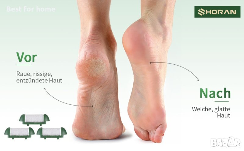 Комфорт и ефикасност: в сравнение с конвенционалните инструменти като стъргалка за мазоли, резачка за мазоли, камък за крака, пластир за мазоли и ексфолианти за крака, можете да премахнете мъртвите мазоли и силната кожа на петата по-лесно и по-удобно без допълнителни усилия, болка или дори нараняване. Предлага се с 2 допълнителни резервни ролки за решаване на различни проблеми с краката и получаване на гладки крака, подходящи за мъже и жени.