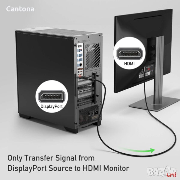 Този адаптер DisplayPort към HDMI е съвместим с лаптоп (HP ProBook EliteBook, Lenovo ThinkPad), настолен компютър тип кула (HP, Dell, Lenovo), GPU (AMD, NVIDIA) и други устройства с DisplayPort.Свързване към телевизор, проектор, монитор, VR слушалки и т.н. Съвместим с оборудвани с HDMI телевизори/монитори/проектори за видео и аудио прехвърляне.