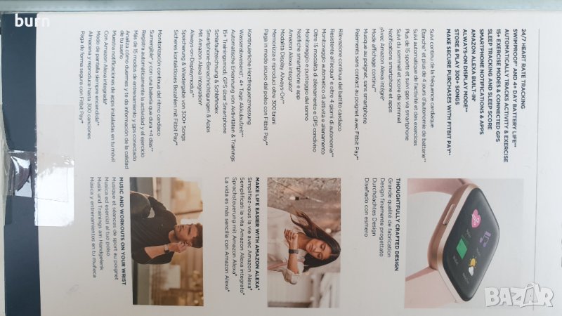 • Грижа: ако вашият Versa се намокри или изпоти, го свалете и го подсушите добре преди да продължите да го използвате отново.