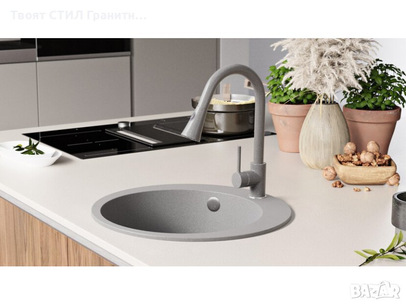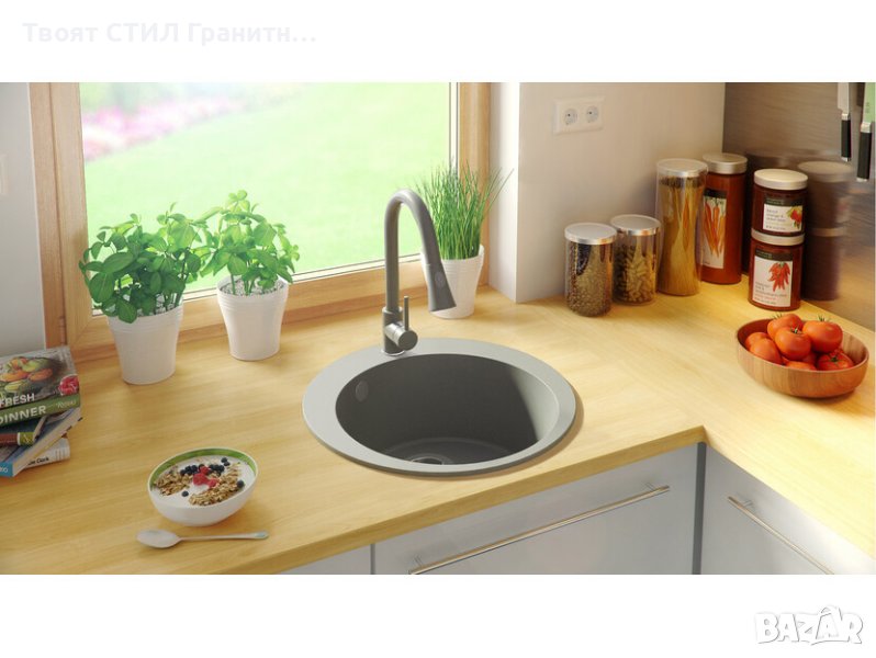 - Класическа и минималистична - кръглата мивка е универсална и пасва на всяка кухня
