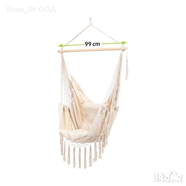 Висящият хамак има твърди въжета, които го правят издръжлив. Седалката е изработена от памук.