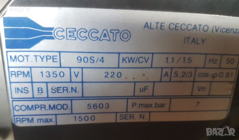 компресор, безмаслен с уловител на влага с тефлоново покритие на буталата.