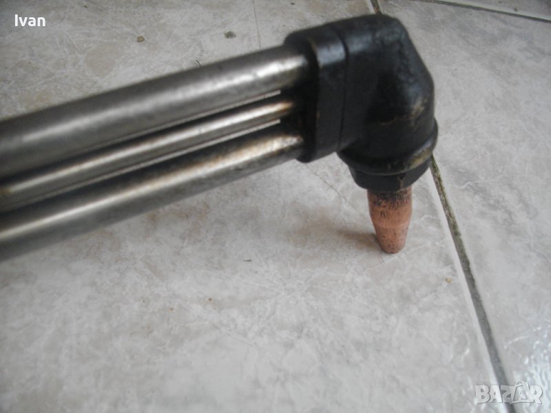 оксижен /газо-кислородно-ацитиленово рязане, заваряване, запояване/ . НЕ Е НАЛИЧЕН. Тритръбен. Професионален. Марка и модел - GCE X511. Със бронзов спусък и брнзова глава. Смесване на различните газове в главата. Дебелина за рязане 3-500 мм. Цялостна дължина на резака - 900 мм. Троте тръби са оловно-цинкови. Поставена голяма контактна дюза отпред с дължина 50 мм и 7 отвора за пламъка, с работно налягане 0-9 бара. Два въртока бронзови. Бронзова дръжка с алуминиево покритие. Бронзводи изводи за щуцери отзад. Резака е със запазен външен вид и добро техническо/работно състояние. Тегло на резака - 1,8 кг. Модела резак се предлага и в България. Нов е на цена средно 525 лв. Характеристиките му могат да се проверят в нета. Цена на резака 90 см GCE X511 тритръбен от обявата - 399 лв.