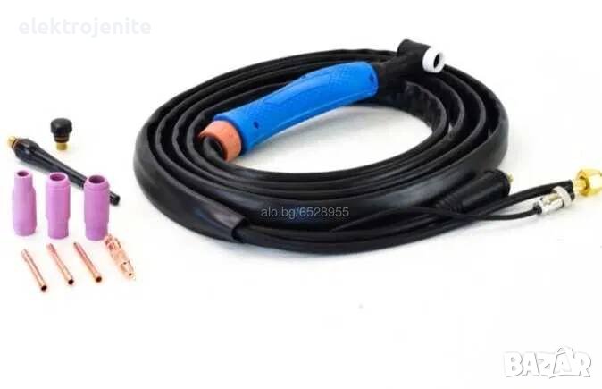 Окомплектовка- с медни заваръчни кабели кабел маса, висококачествена аргон ръкохватка /шланг за TIG заваряване/ с дължина 4 метра, чукче, заваръчна маска и консумативи.