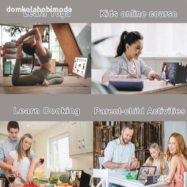 Акрилна лупа с висока разделителна способност облекчава умората на очите и дискомфорта, причинени от дългите часове използване на малкия екран, и предпазва очите ви от синя светлина. Работи точно като прожекционен екран. Увеличавайки размера на екрана на мобилния телефон, така че можете да се наслаждавате на филми и видеоклипове с висока разделителна способност. Има ергономичен дизайн, който е идеален за повечето мобилни телефони до 7". В сгънато състояние става много тънък, така че можете лесно да го носите в чантата си. Има опорна позиция за устройството и височината може да се регулира с помощта на стойката .Не се нуждае от захранване или батерии.Той е идеален за провеждане на фитнес, готварство или онлайн класове.Включва инструкции. Материал на продукта Пластмаса