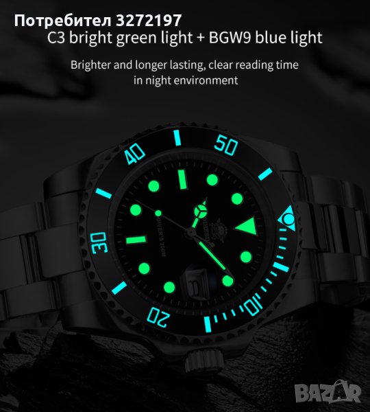 Светлинен циферблат: 240 000/KG Swiss C3 супер ярка пудра със зелен блясък